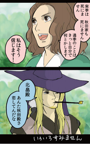 檜山から三春に移封されるとき、 残していく家臣が生計を立てられるように秘伝書をプレゼントしたり、 自分でも薬を作って生活の足しにしていたようです 実季SUGEEEEEE 実季の特技は一人遊びだけじゃないんですね(やめてあげてーーー) いよっ生まれながらの日ノ本将軍!!! その理由について、青森県史では 「親父の愛季が若くして亡くなっちゃったし、実季本人も病弱だったから」 と憶測しているのですが 秋田家は蒲柳の性質だったのかしら… ちょっと悲しい… お隣さんの戸沢家の若死の血が激しすぎるので目立たないけれど そういえば、愛季や実季が力持ちとかいった類の武勇伝は聞かないなぁ 拍手ありがとうございました!!続きにお返事です