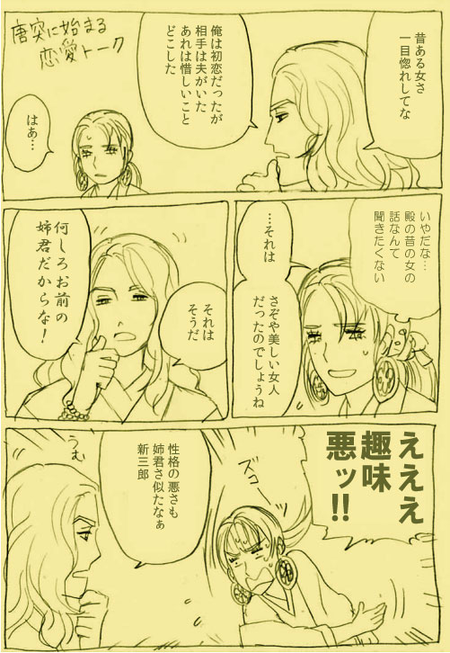 別に季広が渡ったわけではなく、どちらかといえば 安東舜季(愛季のパパ)の仕事ですよね 私としたことが、何を勘違いしていたんだか…! いや、もろ季広の現役時代だし間違ってもいないんですが じゃじゃ馬な娘に手を焼く戦国武将というと、管理人が真っ先に 思い浮べるのは毛利元就なんですが、 季広長女は松前スキル(=暗殺)を持ったじゃじゃ馬なので くらべるのもおかしな話ですが、季広さんの苦労は元就の比では なかったと思います 季広長女を見てると、 「父や夫の政治の道具である不幸な戦国の女性」っていうのも いろんなケースがあって、中には全く同情できない場合も あるんだなあと思います。ほんと… それでも娘を手厚く葬る季広さんは悲しい(´;ω;`) 慶広ももし10年早く生まれていたら、きっとお姉ちゃんの手に かかっていたんだろうなぁ り、リアルすぎてぞっとしない話だ… 早くお姉ちゃんを漫画に出して動かしたいです! 前に、ちらっと愛季の初恋の人を季広長女とした漫画を描いたんですが それは愛季と彼女が似た者同士だと感じたからです サイモン&ガーファンクルのアイアム・ア・ロックが慶広ソングに聞こえて仕方ない