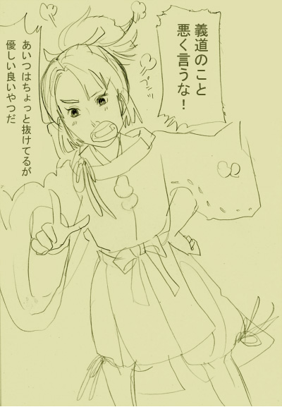 時間がないときほど想像力はたくましくなるので今はガマン! 大宝寺さんと羽黒山の関係がドロドロしていて面白いです 大宝寺義氏は若干屈折したプチ信長のイメージがあるなあ 毘沙門天オタ(こらっ)の上杉謙信とも絡めていろいろ練っていきたい ところです それにしても羽黒山が喧嘩っ早いのは戦国時代の気風なんだろうか 閉館直前の図書館に滑り込んでギリギリ借りられた奥羽永慶軍記読んでます! 管理人のためにはるばる(何故か)千葉から取り寄せてもらった甲斐がありました 面白すぎて泣ける(…) とりあえず一番興味のある南部家あたりをパラーッと見て気になったところ ・「俺の後ろに立つな」と言い出しそうなクールでアクティブな南部信直が拝めるのは 奥羽永慶軍記だけ!ピンチになるほど光る男、それが信直 ・信直と北信愛がラブラブすぎて腹立つ ・矢島満安はKYすぎる ・しかし奥羽永慶軍記のヒーローは満安なのであった ・そしてその満安をdisった小野寺義道の評価は言うまでもないのであった ・「一人でできるもん!」な戸沢盛安。九郎めんこいよ九郎 最上・小野寺関連の記載が充実しているので 舐め回すように読みたいと思います! しかし軍記物は面白いけど難しいですね 信憑性的な意味で 今見ている独眼竜政宗とちょうど時期的にかぶっていて、 落書きで申し訳ないです… 安東愛季に説教する戸沢盛安の図 盛安は良い子なので知り合いが馬鹿にされたら黙っていられない 安東愛季「( ̄ー ̄)九郎くん九郎くん、最近小野寺義道と喧嘩しているみたいだね。 ここはひとつ俺と一緒に小野寺のバカ殿を滅ぼそうじゃないか」 戸沢盛安「ヾ(。`Д´。)ノやだよバーカ!!!」 安東愛季「( ̄д ̄)??」 戸沢盛安「ヾ(。`Д´。)ノ悪の総帥に与する九郎ではないわ! 正義の鉄槌をうけるがいい!くらえ夜叉九郎キーック!!!!」 これが唐松野の合戦の発端である… 事の次第を後から聞いて青くなる小野寺義道であった…(義道いっつもこんな役回りやな) 由利党のことを調べていたら愛季様の隙のないイケメンっぷりに惚れ惚れしてしまいました あと、大宝寺さんも気になる! メルフォおへんじ、遅くなってすみません!もう少しだけお待ちください! 拍手くださった皆さんありがとうございました。やる気を補充されています^^