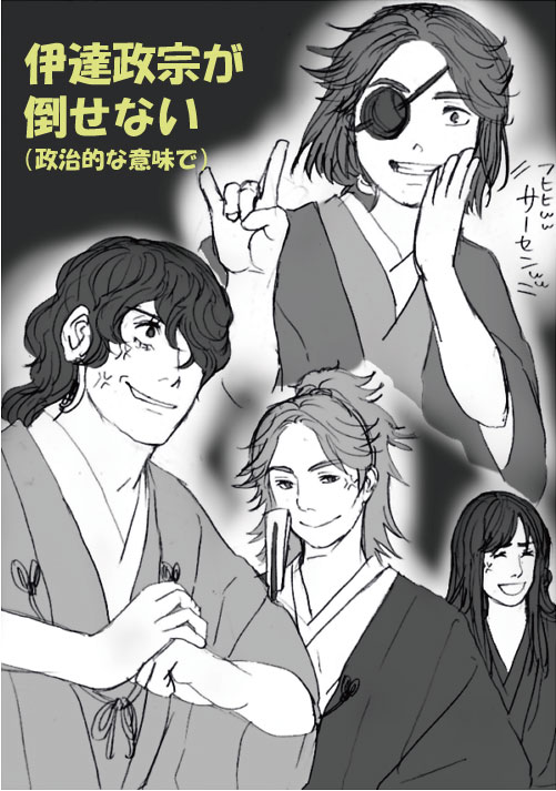 突然見知らぬ男性に「何か探しものですか?」と聞かれた管理人です。こんばんは。 そんなにキョロキョロしてましたか…そうですか… いや世の中の人が優しいことに感動すべきですよね!(そうかな) 絵を描けない環境であるほど描きたいものがありすぎて困ります。 とりあえず今のところの野望として描きたいものリスト。 どうしようもない自分用の覚書なので興味のある方のみ反転してください ・北条家だよ!全員集合 とりあえず幻庵のじい様と氏政 ・氏康と綱成の夫婦漫才 ・義光様と楽しい東北若手大名の学園生活 ・屋裏の変シリーズその4 ・毛利家のお風呂と団子の話 ・はまなすのつづき ・利休セブンTOP3の青臭い話 ・頼り上手南部信直と頼られ上手レオ様 ・えらいぞ実季 どうやって終わらせる気だ!!! 今日は一日中愛季と慶広のドロドロした関係を想像していた萌え日和でした (気持ち悪すぎる) ないと思いますが、万が一何かリクエストがありましたらメルフォ等で教えて ください。鋭意努力します 1日遅れてしまったけど、8月3日は政宗さんのお誕生日でした。おめでとうございます。 誕生日らしくないイラストでごめんなさい。 何回やっても、何回やっても、伊達政宗倒せないのは 下段左から蒲生レオ様、義光様、佐竹んとこの義宣 それぞれ本当に優秀な政治家なのに、政宗相手だとどうしてこう…伊達マジック! 彼は現代の仙台経済に貢献しすぎだと思います こちらとか お膝元で大人気なのも当然だ…! もう知事になったらどうかな。マンゴーの県の人みたいに宮城の観光大使になればいいと思う。 管理人の地元では天才バカボンのキャラクターが市長になっているので 政宗の知名度をもってすれば十分いけるんでないかと つづきに拍手おへんじです 更新:メインの設定(東北諸家、南部家、その他)をいじりました。