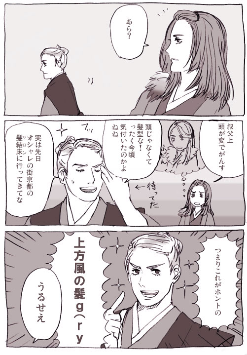 あとメイン「淵」完結しました。ふぁファンタジーですから…!構えずに気楽に読んでください 信直「いいか、俺の嫁が半端なくめんこいけど、勘違いするなよ? あいつは俺の嫁なんだからな!誰にも渡さな(ry」←うるさい タイトルは百人一首からいただきました。信直がストーカー化する前のお話です 読み返してみたらシュチュエーションが…すごく…「妹背の道も遠からず」です よっぽど好きなんだなこのシュチュエーションorz ところで青森県史はネタの宝庫ですホント 秋田氏・松前氏までカバーする青森県史のクオリティにいい意味で涙目です ついでに南部信直の書状がとてもキモ…微笑ましいのですがその話はまた後日 つづきに拍手おへんじをしまっておきます PR 誰も望んでいない自信のある髭の話です……