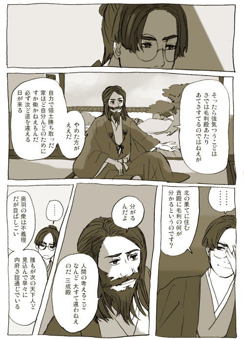 明らかにやりすぎた感満載の暫定愛季様。 安東さんちは北海道と縁が深い家だからいいかなって思って(…) 愛季様めあてで秋田県の戦国をちょこちょこ調べているのですが 日本海側もなかなかのカオスですなー 国人衆がいっぱい出てきてむつかしいです そして安東家があまりにも南部家と対照的なので …もしかして狙っているのか?と思ってしまいます (管理人の頭が南部一色だからって) 安東家が朝敵・安倍氏の後裔と主張しているのは 中央政権に対する反骨精神的なものの表れなんでしょうか 南部家の「俺ら源氏ー!(*´▽`*)ノ゛」という無邪気な 主張がお約束を通り越して微笑ましく見えてきます(笑) 南部が八戸を除き南部駒を駆って勢力を広げたあくまで 内陸型の武士団ならば、 安東は湊を中心に、城も海沿い、海戦もバンバンこなす 一大海洋王国な点も対照的ですね。 安東家は海運を利用した外交が盛んだったせいか 最上家や上杉家と絡めるのもとてもおいしいと思います。 つづきに拍手おへんじです