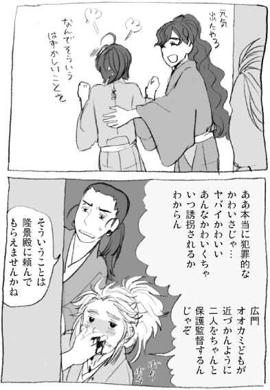 子どもの日! 男の子の鎧飾り、最近は戦国武将ものが流行っているそうで チラシなんかを見ると例の直江さんの兜のレプリカ とかあるので面白がって見ています。 パッと見たところやっぱり政宗DATEの前立てはかっこいい。 マイナーどこも結構そろっていて感心したのですが、なかでも 一番ビックリしたのは南部政長の鎧飾りです。 「こんなところで南部が来るはずない!これは何かの間違いだ! 奥ゆかしい南部がこんな晴れ舞台に(ry」(※南部への愛ゆえです) と混乱しましたが、鎧飾りに南部政長はわりと普通のことらしい。 あれ、でも政長は戦国時代じゃ…ない… 話とは関係のない元清と元政。 毛利兄弟の中で一番の仲良しはこの二人に違いない。 毛利さんちは一体どれだけ管理人を萌えさせれば気が済むのですか(…)