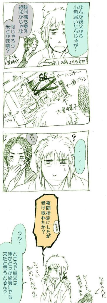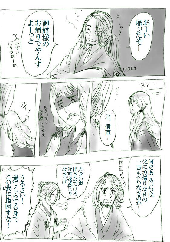 背景が非常に残念 やっぱり下書きは必要ですね(あたりまえだ) もーりさんとこの次男。 うちのサイトで一番ビジュアルが派手な子だと思います ところで今日K教授に 「今朝のNHKの朝のニュースにマチコさん(管理人)が映ってたよ」と言われました (※管理人は見てなかったのですが内容的にはhttp://journal.mycom.co.jp/series/hobobetsu/009/index.html とほぼ同じようです) 念のためですがもちろん管理人は映っていません。 が、K教授は戦国ファンで、ゼミもとってないのに 普段からよくお話させていただいている御方。 管理人の趣味嗜好はよーくご存知というわけです(笑) 「家紋シールは石田三成が人気なんだって」と言う話だったので 「へえー、私だったら秋田さん (※http://www2.harimaya.com/sengoku/bukemon/bk_akita.html) がいいですけどね!!」 と言ったらは?何それ食べ物?ばかなの?死ぬの?って顔をされました。 それを聞いた隣の友人が「秋田さんってどこの人?」と無邪気に質問し 「…秋田県です…」と答えた管理人のみじめさ。 おかしいな…愛季は秋田の英雄だと思っていたのに… 素直(?)に大内とか言っておけばよかった… (それで家紋を思い出せる人が何人いるやら) 画像はブログ画面上では表示し切れないので、 画像クリックして拡大して読んでください。 元春は末っ子の広家に対して親ばか気味。 天地人は相変わらず笑わせてもらっています。 景勝様は子役のときも随分萌えていたんですが、 大人になってからもこれほど萌えるとは正直思っていなかった…! 手に汗握って景勝を見守る兼続の気持ちになっていました。 ああもう景勝かわいい!!! 才走りすぎて失敗する兼続もいい感じに青臭くていいですね。 まさに1年かけて作っていくドラマの醍醐味。 これからどんどん完璧な嫌味インテリに成長していくんですね、わかります。(いや…) メモ ・メインにメモで上げたものなどいろいろアップしました。 ・ついでに設定もちょこっといじりました。